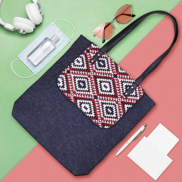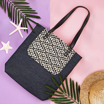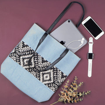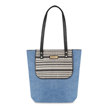 Style meets functionality with this well crafted denim fabric tote bag structured with a hint...