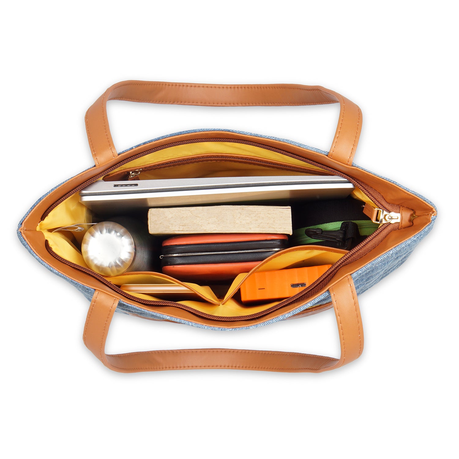 The Classy quilted denim tote bag effortlessly blends style and practicality. Its easy-access outside magnetic pocket is perfect for storing small essentials, while the internal zip pocket and two slip pockets keep phone, cards and money organized. The key leash ensures easy retrieval of keys, preventing them from getting lost in the depths of the bag. Whether you're attending a special occasion or running errands, this bag is a reliable and stylish companion.