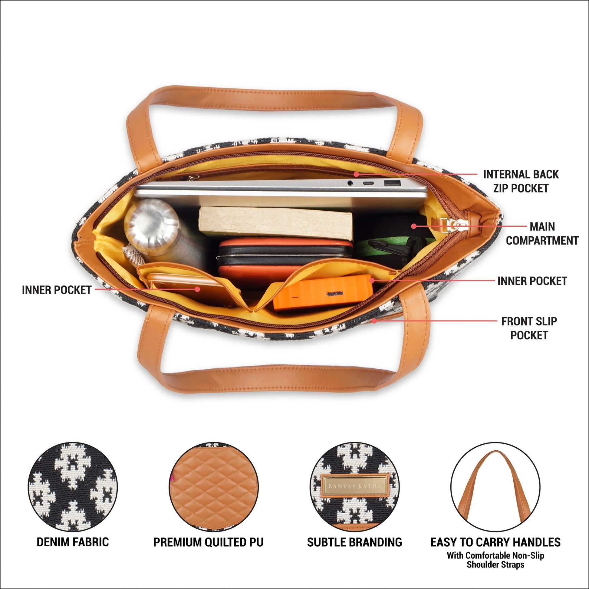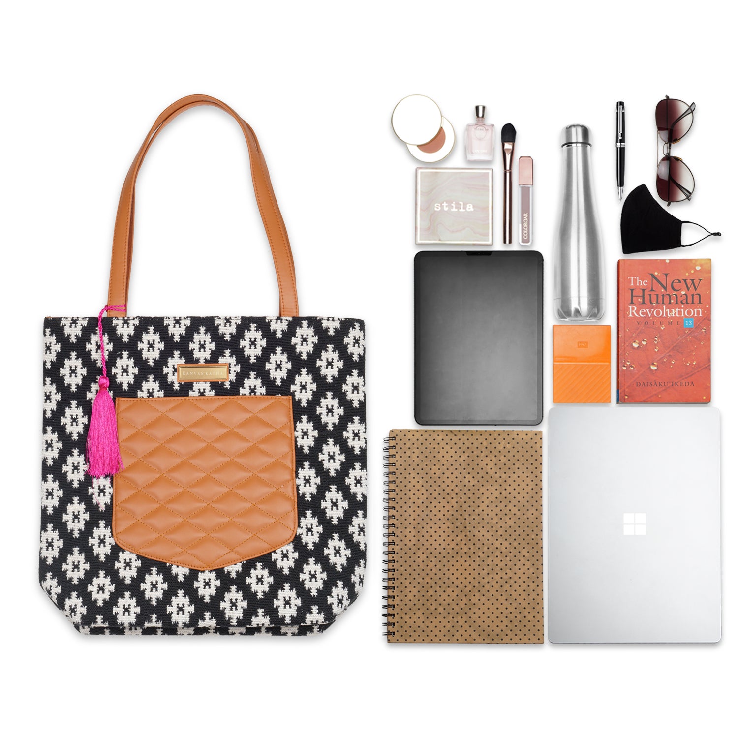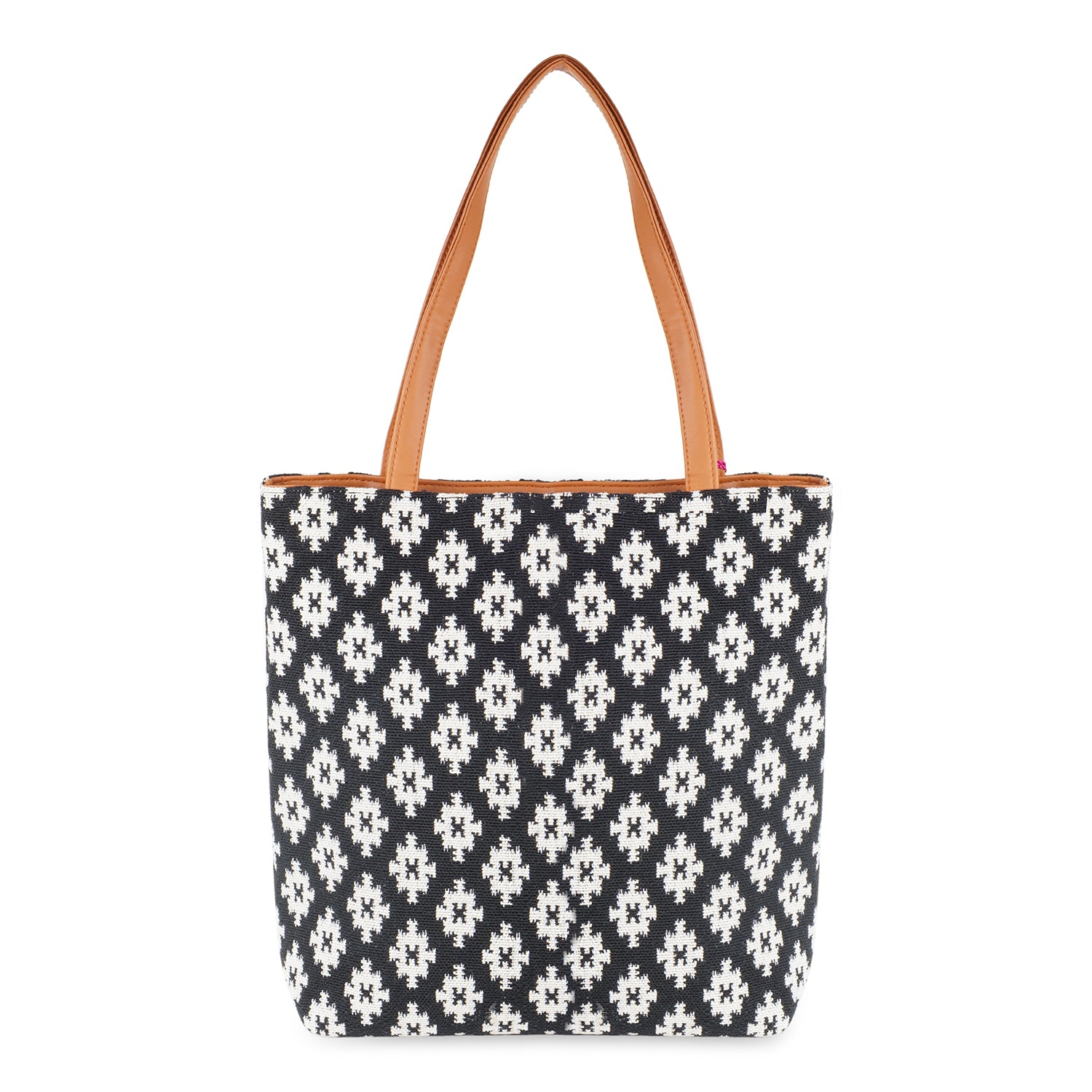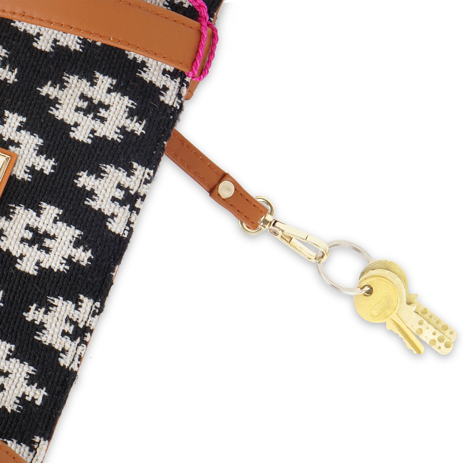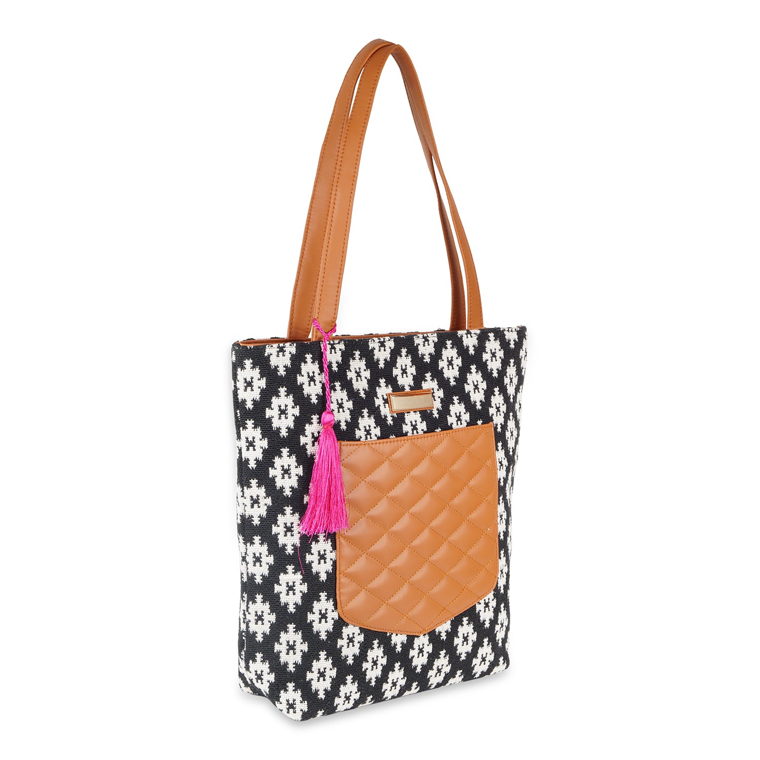The Classy woven jacquard tote bag effortlessly blends style and practicality. Its easy-access outside magnetic pocket is perfect for storing small essentials, while the internal zip pocket and two slip pockets keep phone, cards and money organized. The key leash ensures easy retrieval of keys, preventing them from getting lost in the depths of the bag. Whether you're attending a special occasion or running errands, this bag is a reliable and stylish companion.