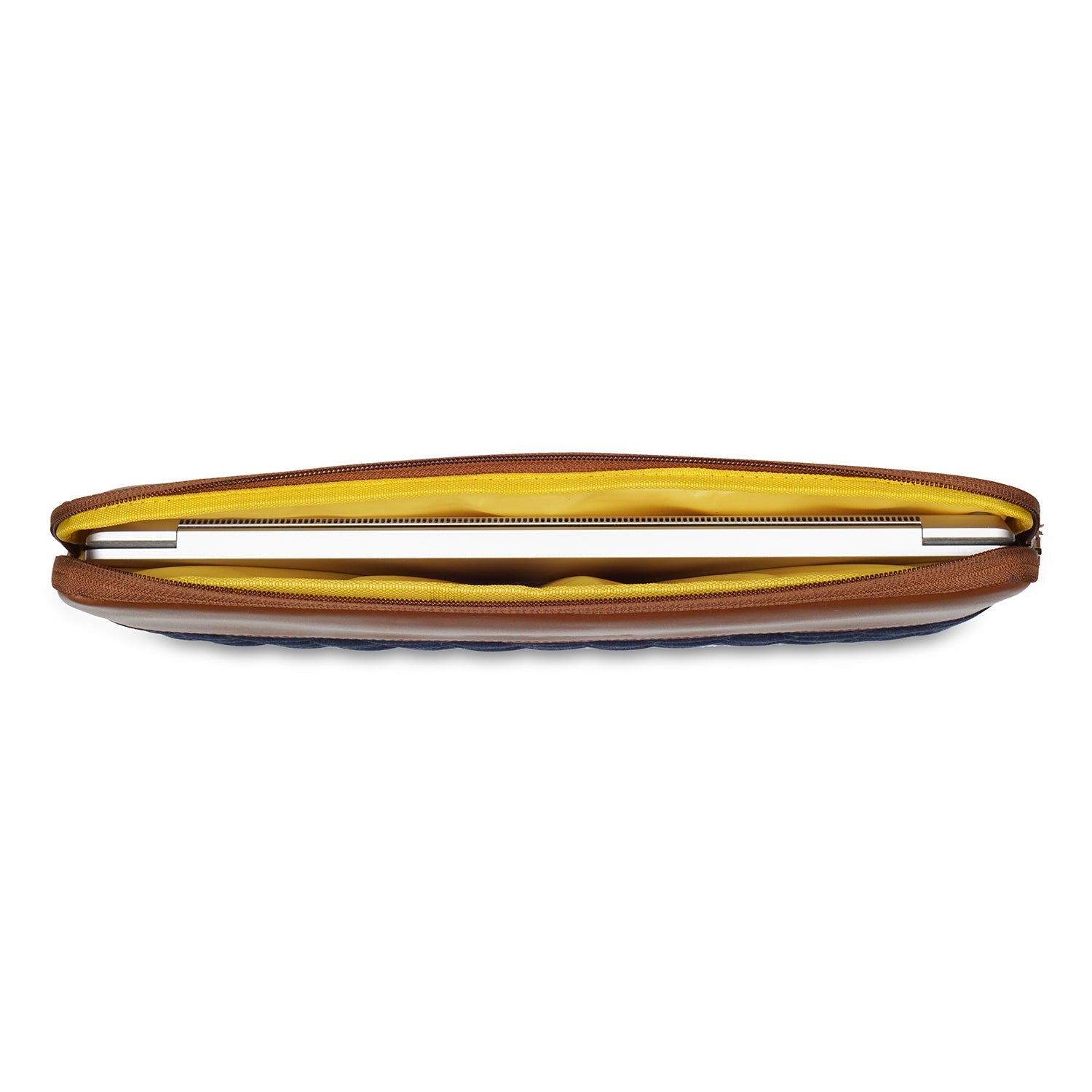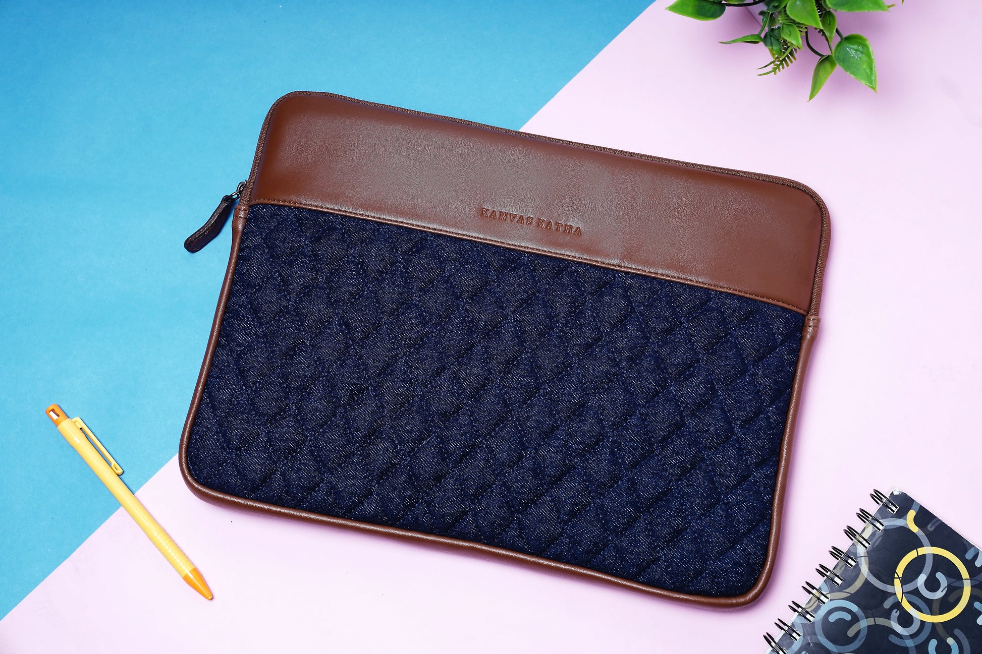 Our sophisticated laptop sleeve designed to perfectly fit up to 13-inch MacBooks and laptops. Meticulously crafted with precision and style in focus, this sleeve features a convenient top-loading zipper for swift access. Constructed from a blend of denim and PU, it not only showcases durability but also exudes a fashionable flair. Its slim and lightweight design allows it to seamlessly slip into your bag or be carried solo. Ensure your laptop's safety with this chic sleeve that impeccably blends fashion with functionality, achieving the perfect balance.