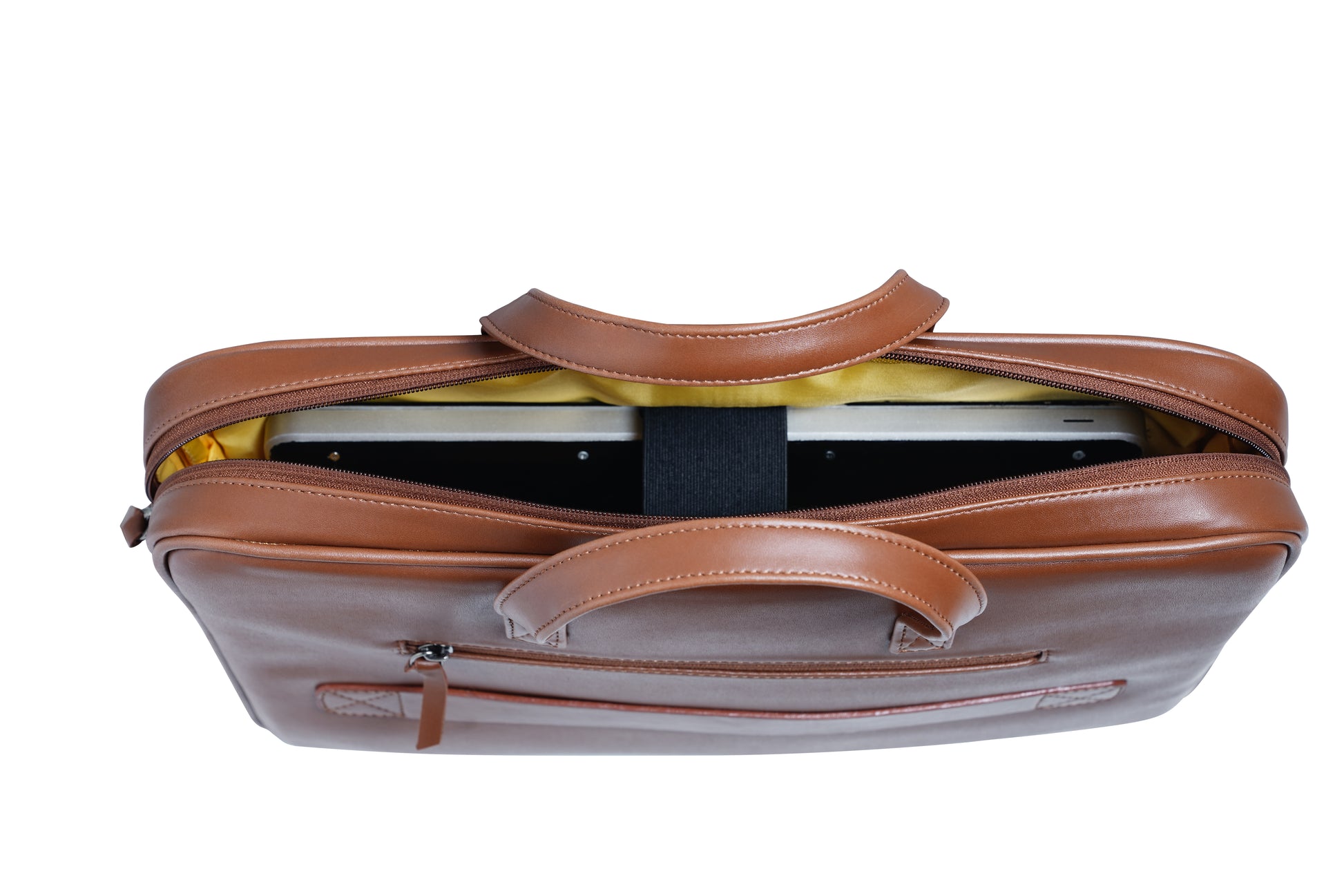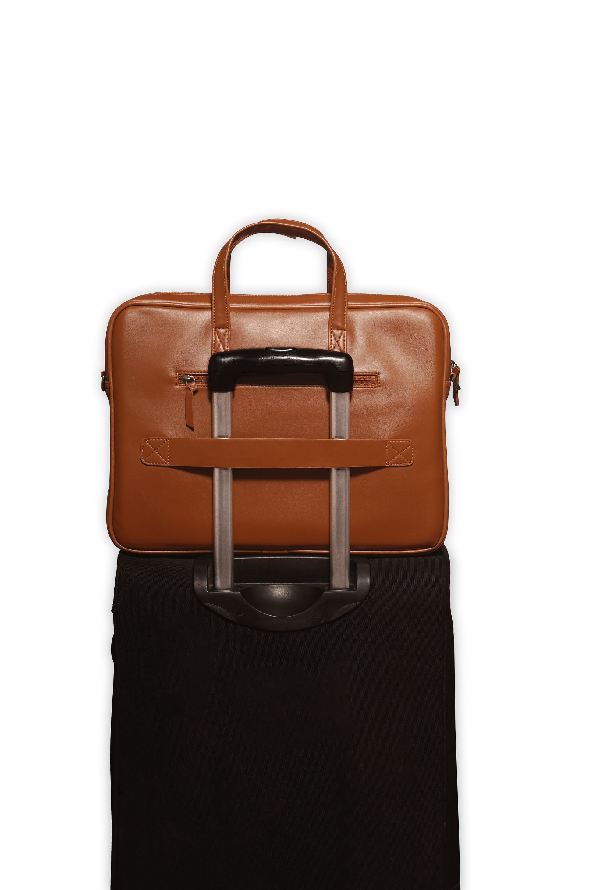 Material – Denim & PU| Dimensions – 11.5(H) x 14.75(L) x 1.75(W) | Main Compartments – 1 with zipper closure | Interior – 2 slip pocket for cash or valuables, Padded laptop pocket | Exterior - 1 Back zip pocket & 1 front zipper pocket.