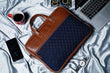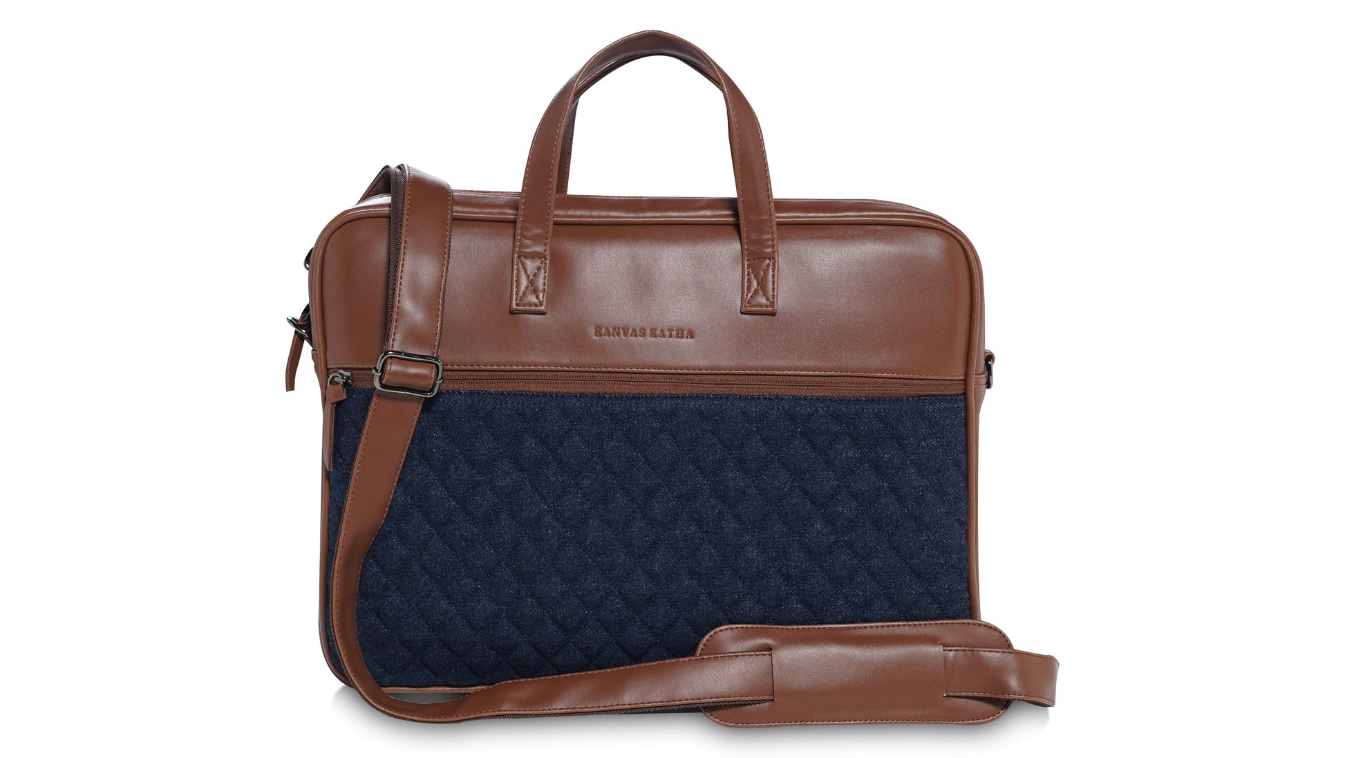 Discover the ideal fusion of style and functionality in the Kanvas Katha laptop bag. Made from soft touch quilted denim and PU material, it effortlessly holds 13 to 14-inch laptops. The top-loading zipper guarantees easy access, and internal pockets provide convenient storage for cables, chargers, and essentials, while a secured padded laptop compartment ensures safety while on the go.