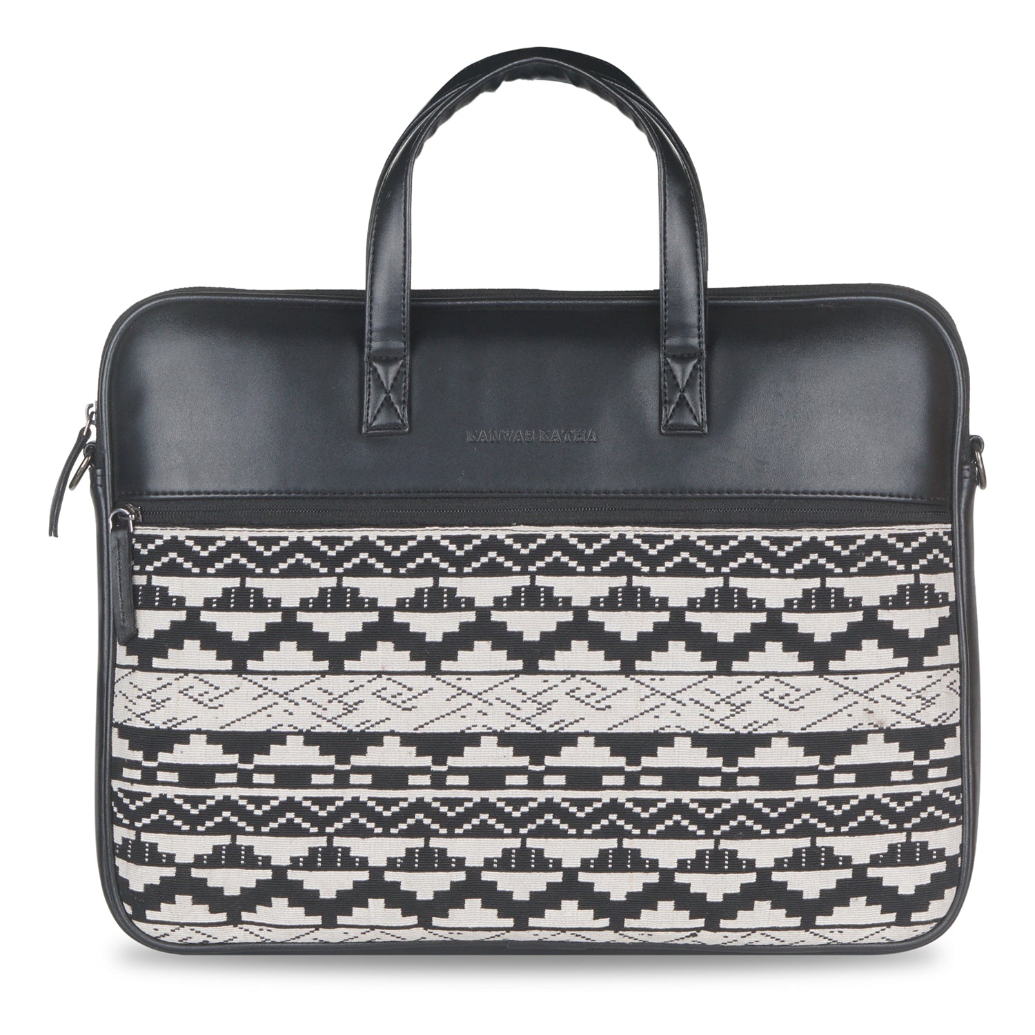 13"-14" Laptop Bag – Jacquard & PU with Padded Laptop Compartment (Black)