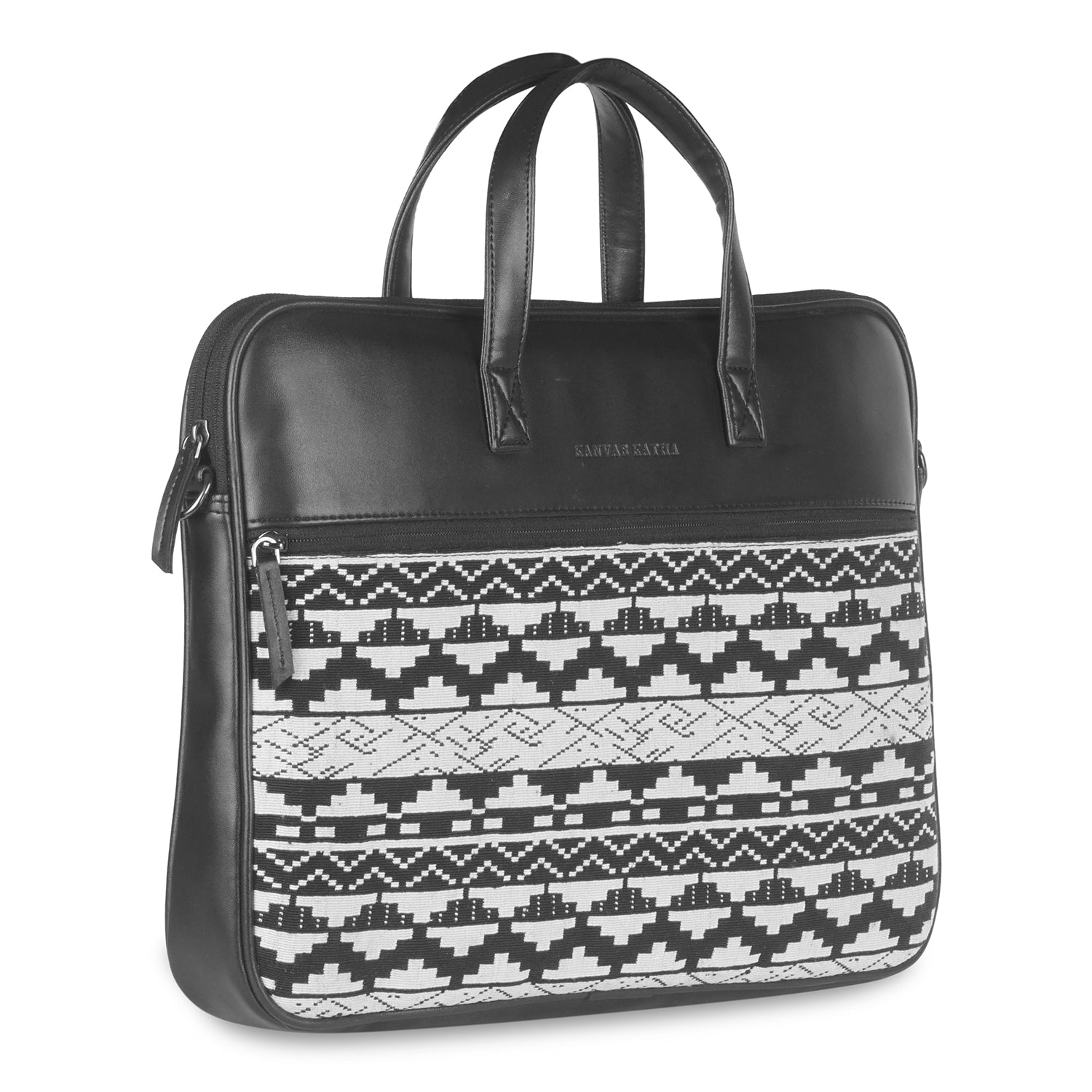 Discover the perfect blend of style and functionality with the Kanvas Katha Laptop Bag. Expertly crafted from soft-touch Nautical Woven Jacquard and durable PU, this sleek bag securely fits 13" to 14" laptops, making it ideal for work, study, or travel.
