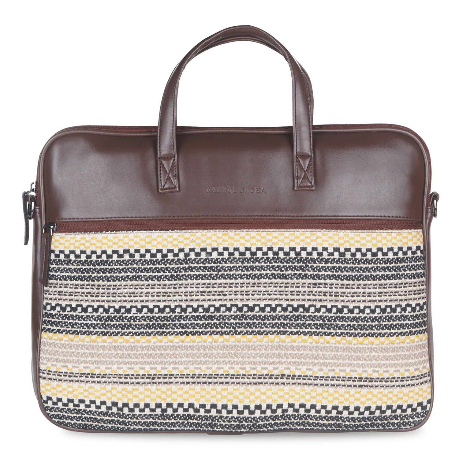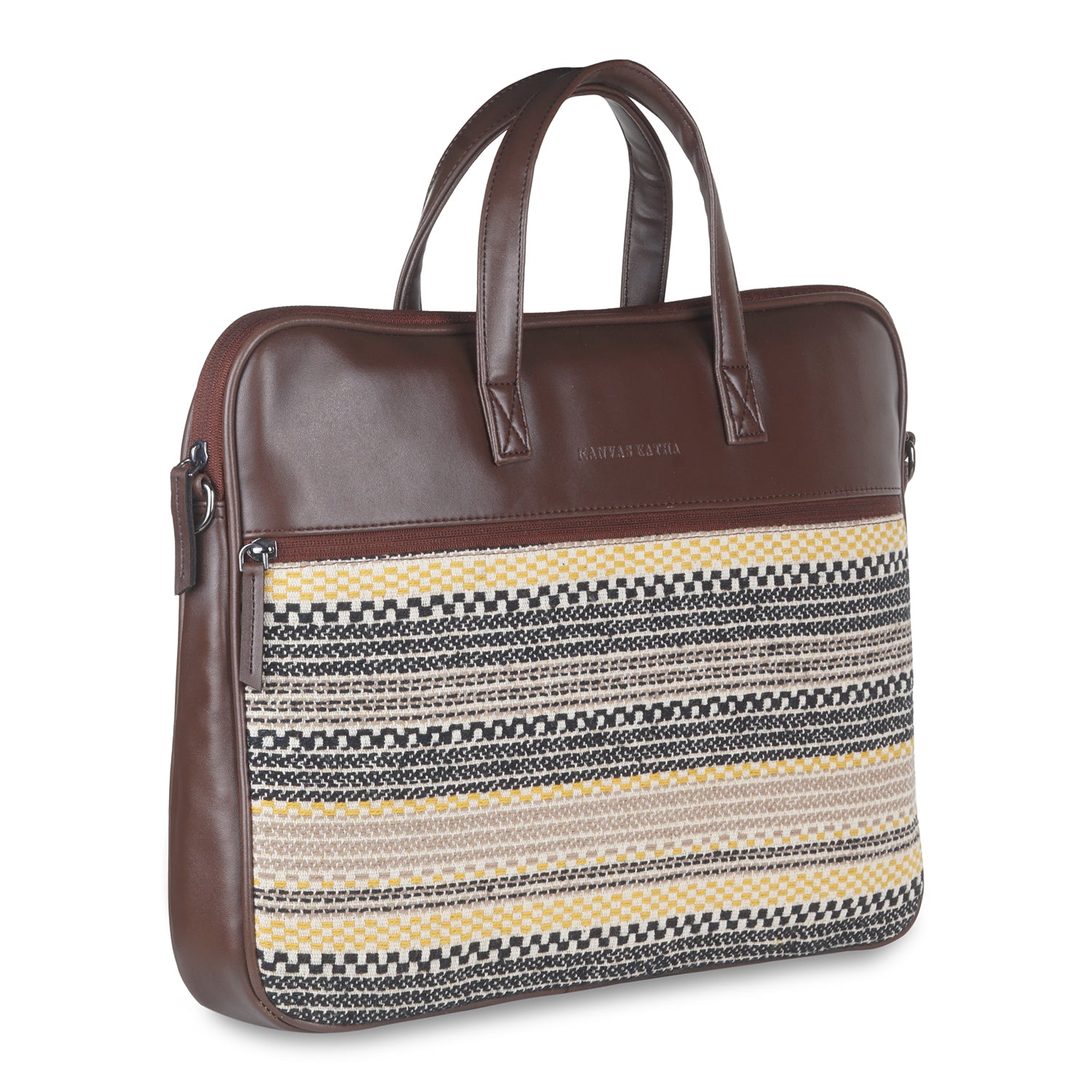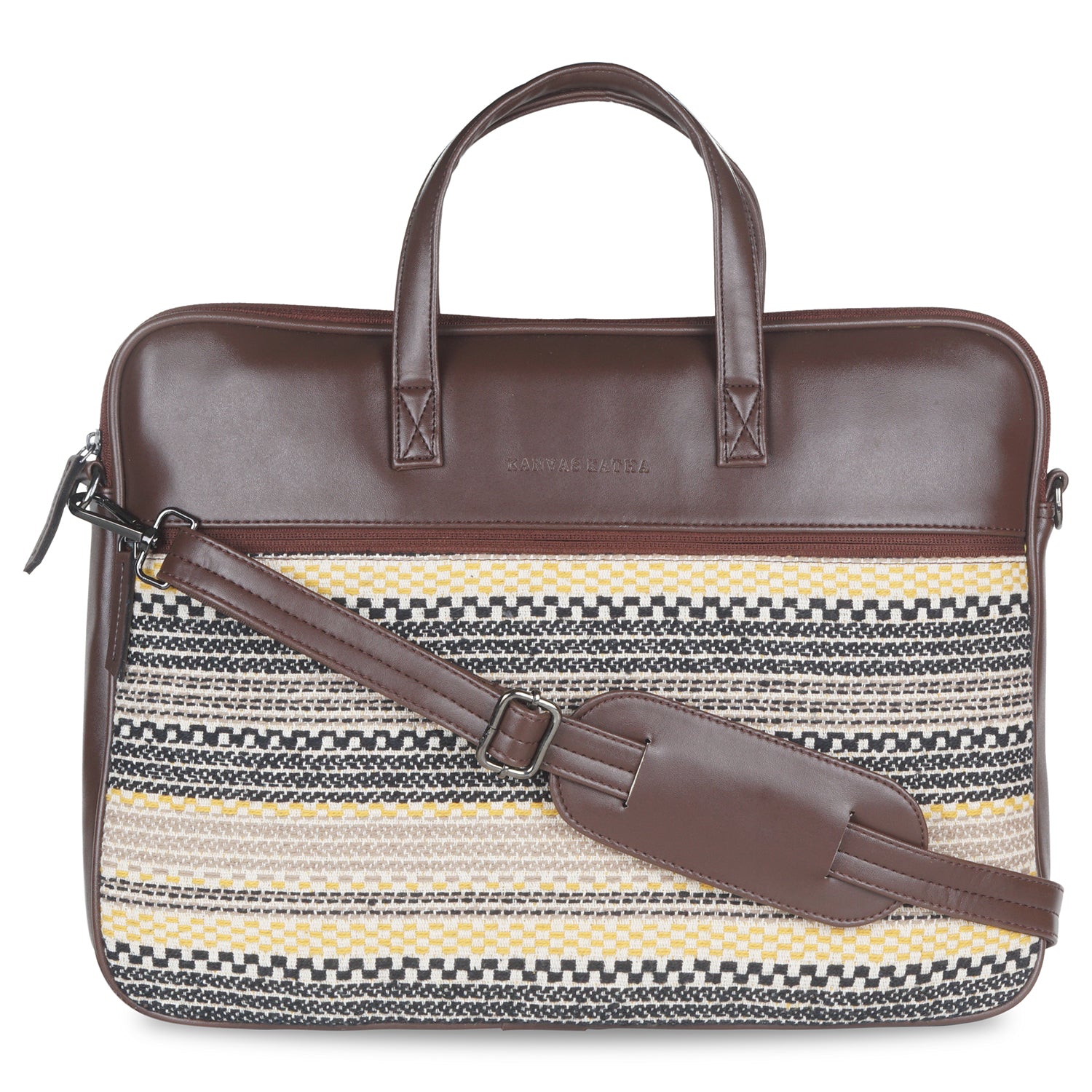 Discover the perfect blend of style and functionality with the Kanvas Katha Laptop Bag. Expertly crafted from soft-touch Nautical Woven Jacquard and durable PU, this sleek bag securely fits 13" to 14" laptops, making it ideal for work, study, or travel.