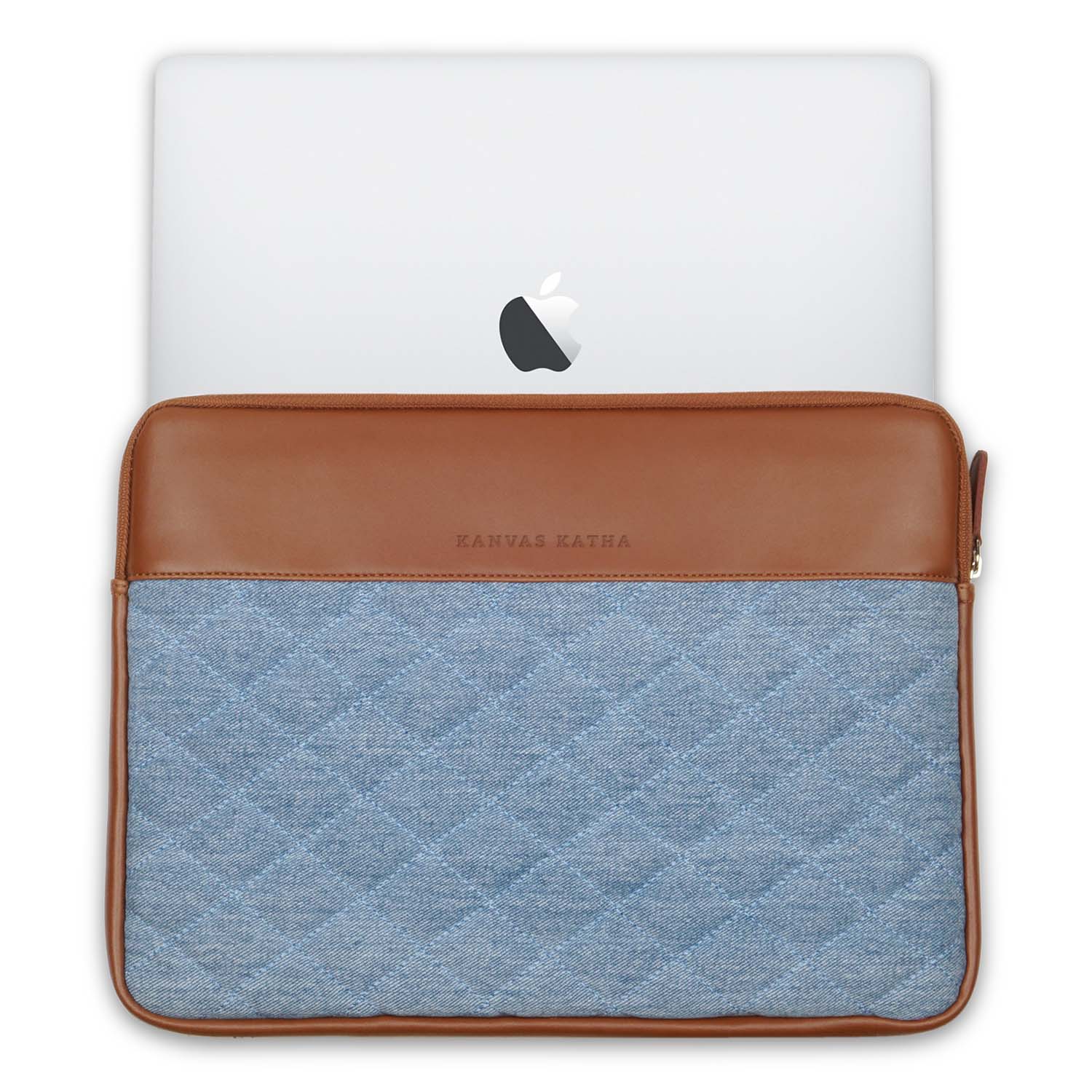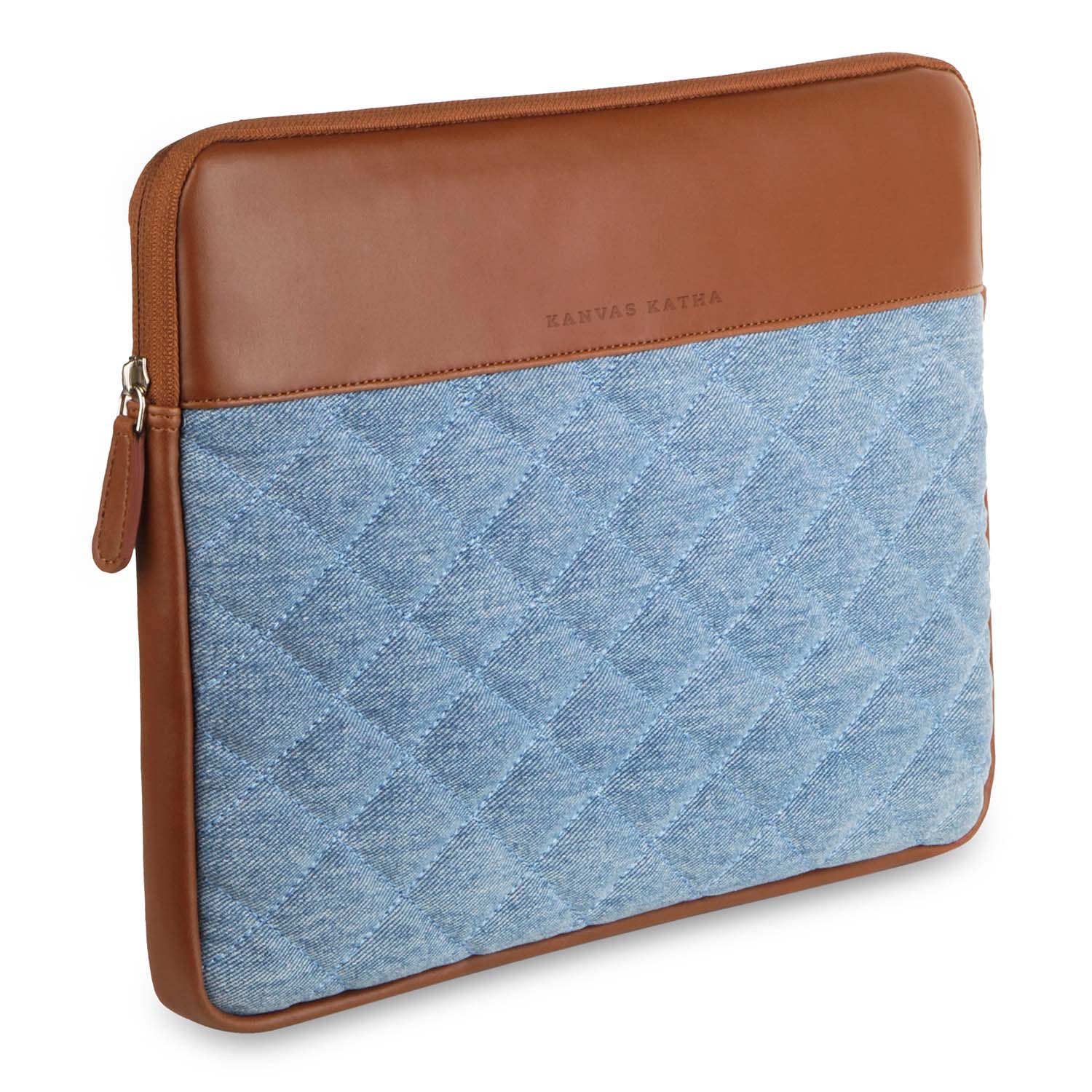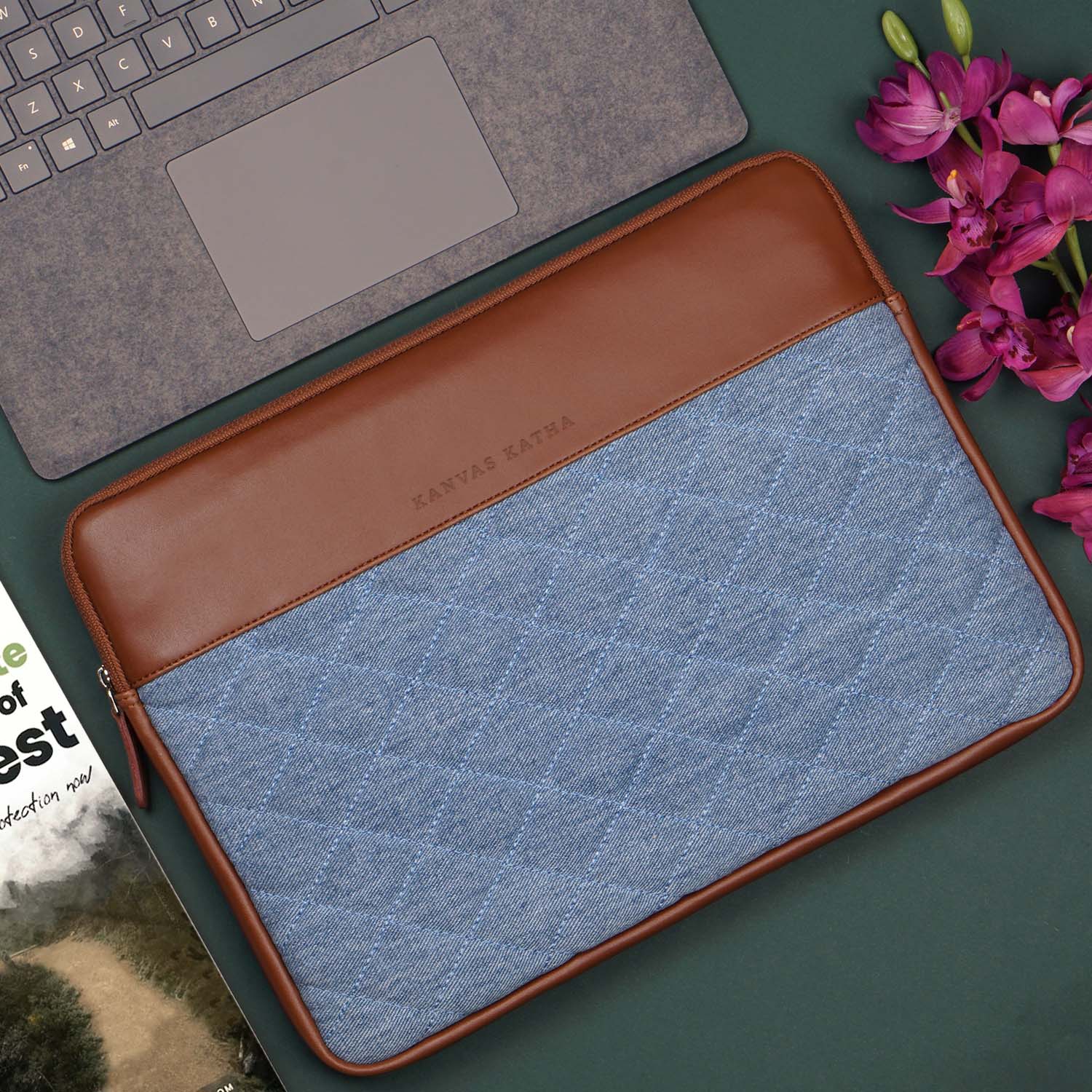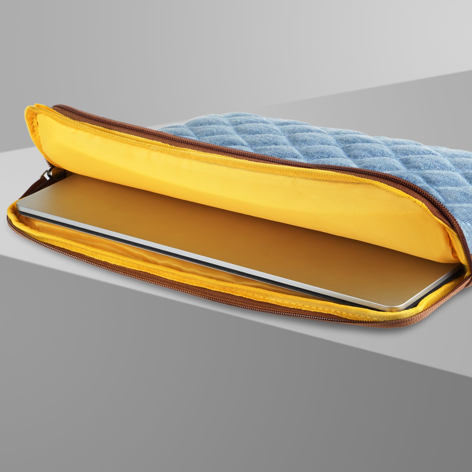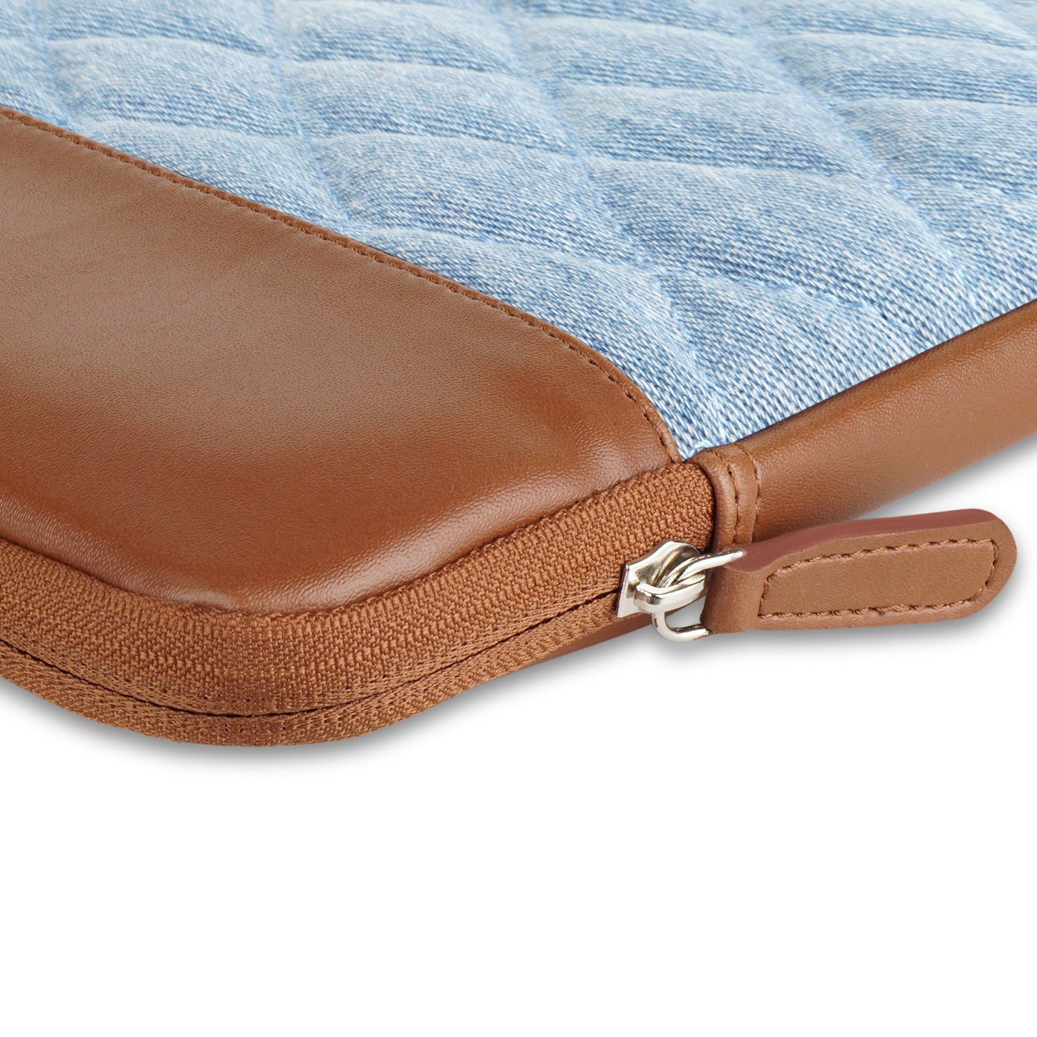 Our sophisticated laptop sleeve designed to perfectly fit up to 13-inch MacBooks and laptops. Meticulously crafted with precision and style in focus, this sleeve features a convenient top-loading zipper for swift access. Constructed from a blend of denim and PU, it not only showcases durability but also exudes a fashionable flair. Its slim and lightweight design allows it to seamlessly slip into your bag or be carried solo. Ensure your laptop's safety with this chic sleeve that impeccably blends fashion with functionality, achieving the perfect balance.