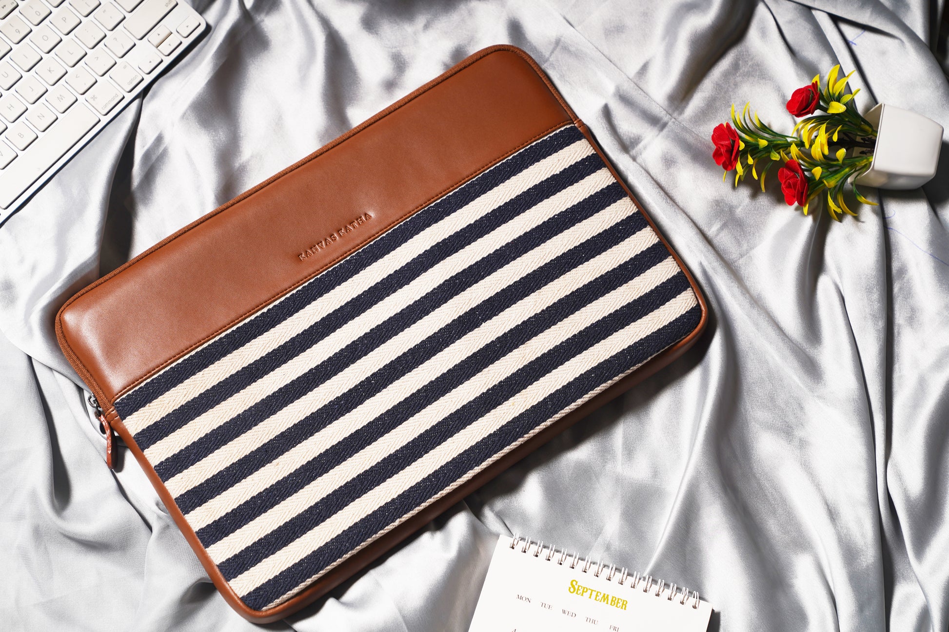 Our sophisticated laptop sleeve designed to perfectly fit up to 15-inch MacBooks and laptops. Meticulously crafted with precision and style in focus, this sleeve features a convenient top-loading zipper for swift access. Constructed from a blend of jacquard and PU, it not only showcases durability but also exudes a fashionable flair. Its slim and lightweight design allows it to seamlessly slip into your bag or be carried solo. Ensure your laptop's safety with this chic sleeve that impeccably blends fashion with functionality, achieving the perfect balance.