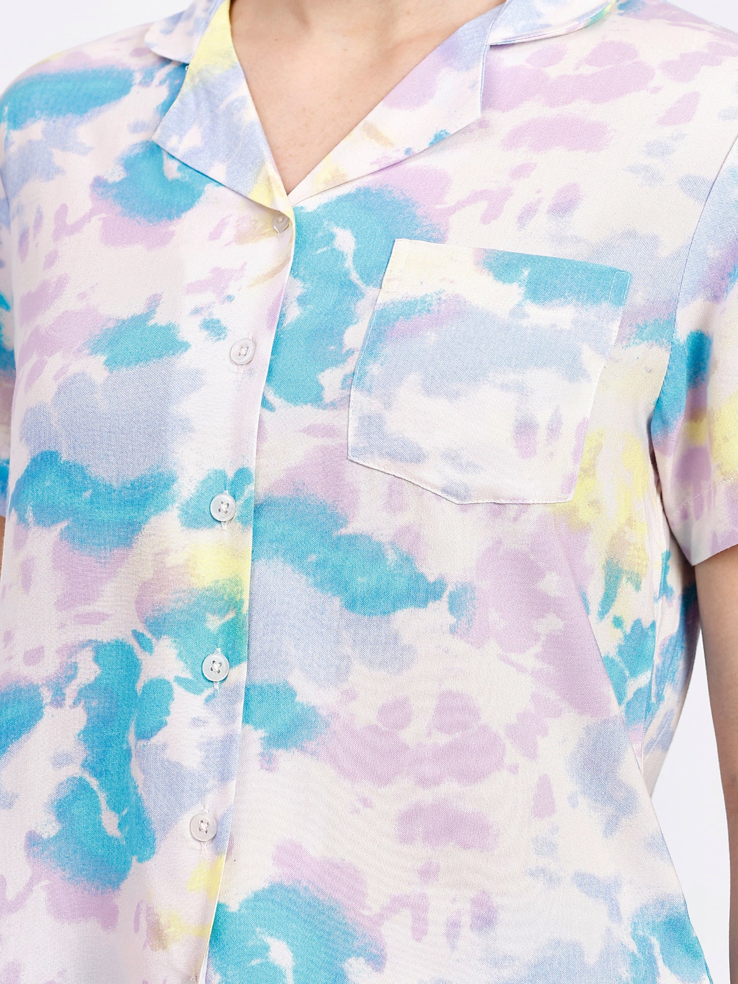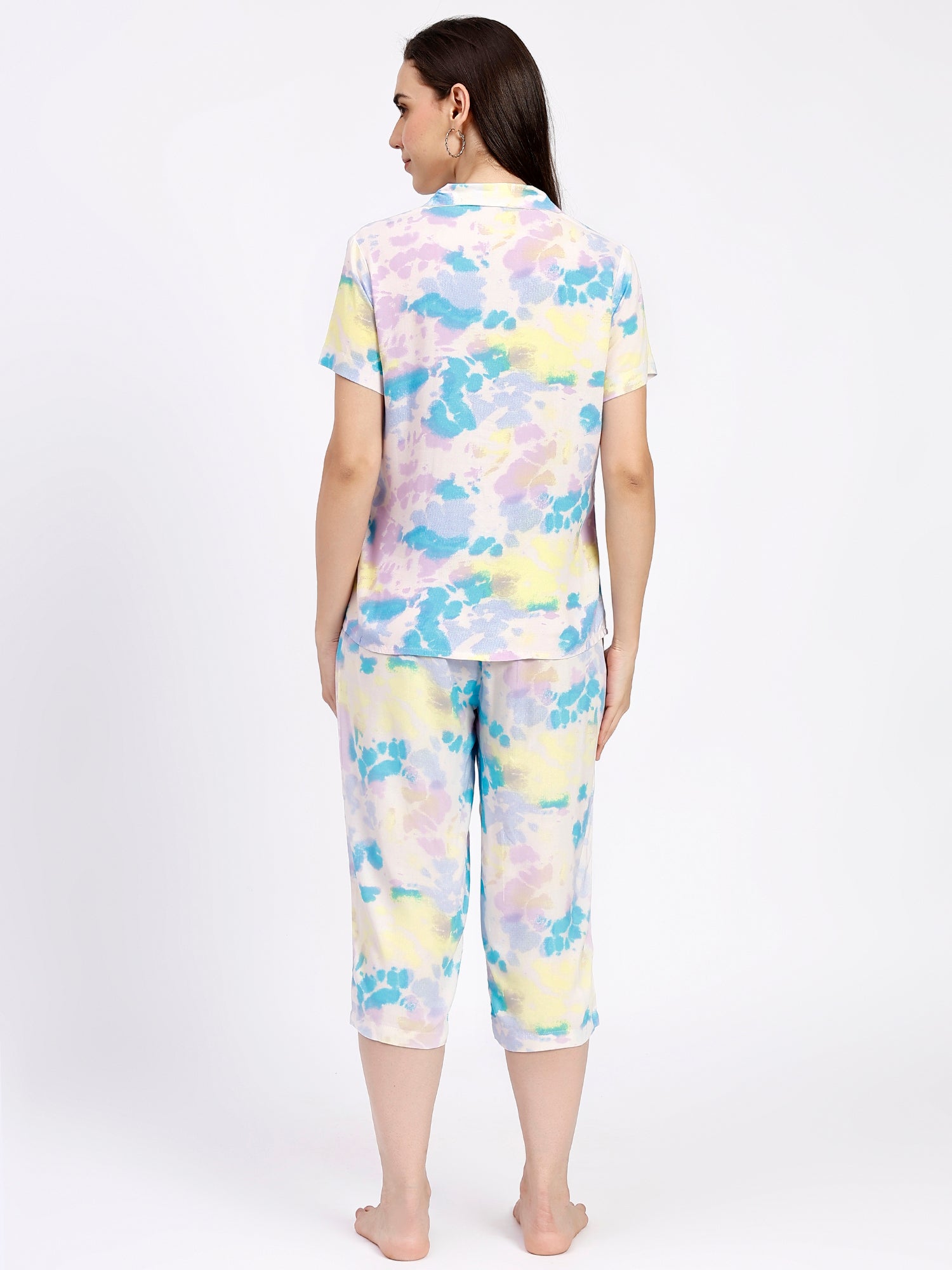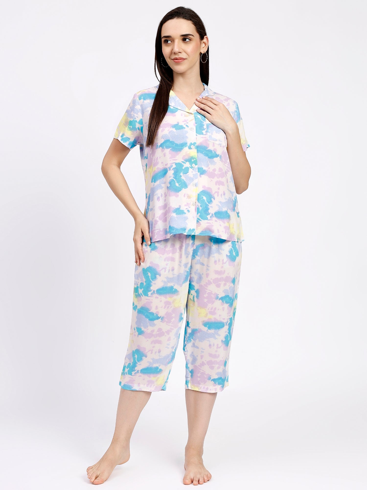 Women's Rayon Printed Night Suit Set |Stylish Co-Ord Set | Short Sleeve Pajama Set |Sleepwear Set| Summer Nightwear|Printed Shirt & Payjama Set