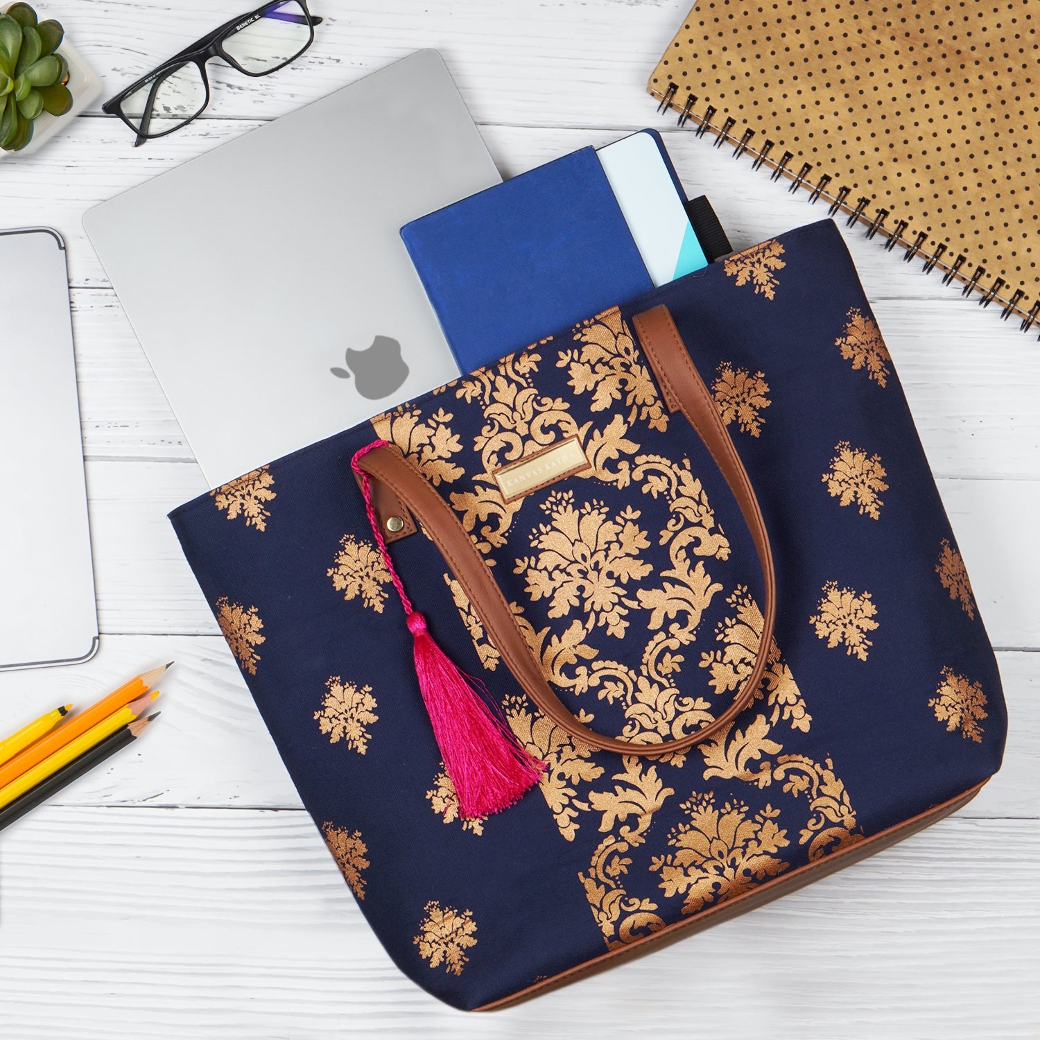 The chic printed tote bag effortlessly merges fashion with style. Featuring an internal laptop compartment accommodating up to a 13" laptop, two convenient slip pockets for easy access to essentials, and ample space for additional items during your daily commute, it caters to those who crave both flair and functionality in their accessories. Ideal for individuals seeking a perfect blend of style and practicality, especially on the go.